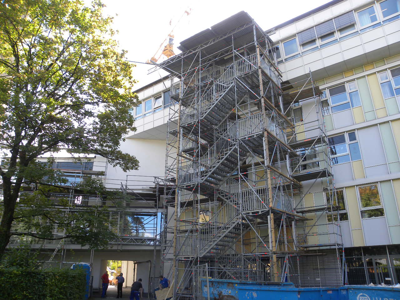 Erweiterung und Aufstockung der Kinderklinik des Dritten Ordens in München Nymphenburg. Die Gebäudeaufstockung erfolgte mit Betonbauteilen und Stahlbau. Rückbau der Bestandstreppenhäuser, Neuaufbau und Anpassung an die Gebäudeerweiterung.
