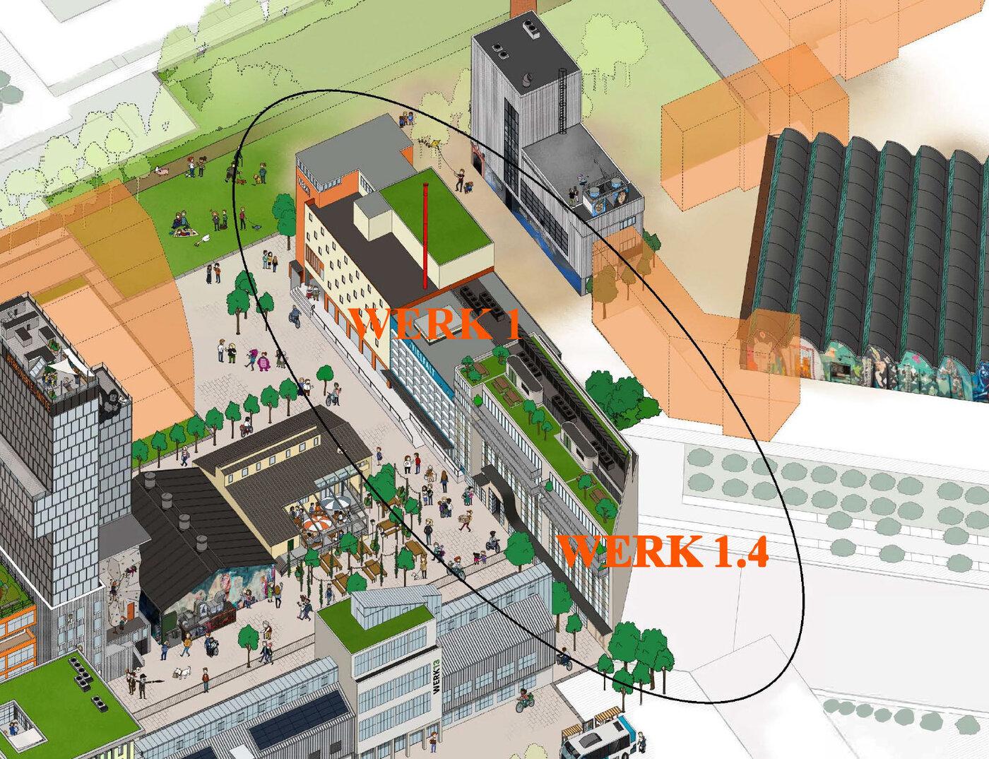 Im Werksviertel wird direkt neben dem von uns in den Jahren 2021 – 2022 erstellten Rohbau „Multifunktionsgebäude Werk 1.4“ das ehemalige Verwaltungs- und Werksgebäude Werk 1 umgebaut und revitalisiert.